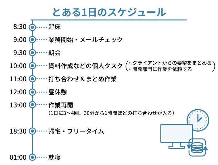 今はフルリモートの案件なので、朝は少しゆっくりめですね。だいたいこんな感じのスケジュールで動いています。