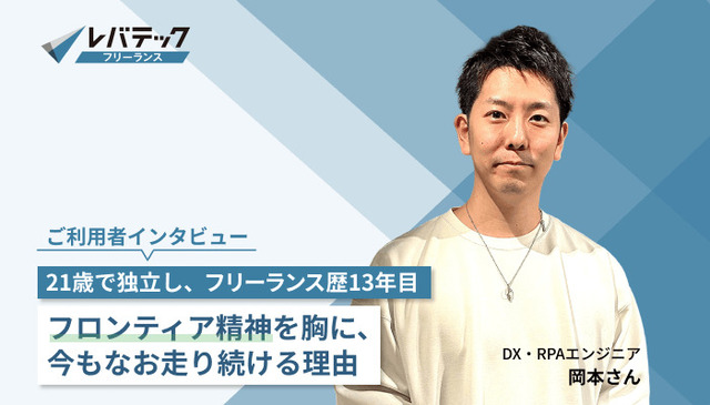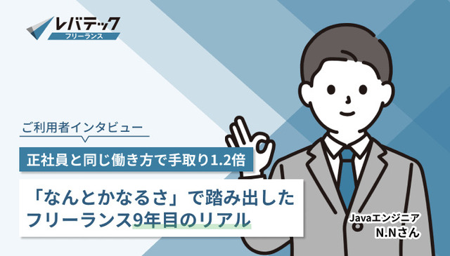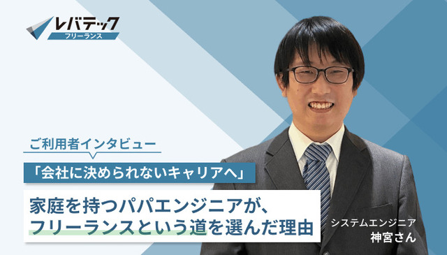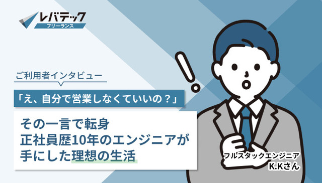 実際にレバテックフリーランスをご利用いただいたエンジニアの方にインタビューをしました。なぜ正社員からフリーランスになったのか?なぜレバテックフリーランスを使ったのか?これからフリーランスになる人へのアドバイスなど、とても参考になると思いますので是非ご覧ください!